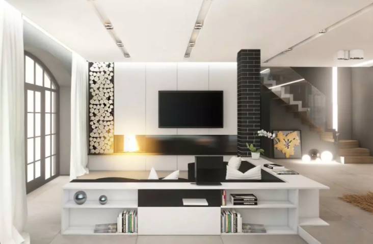 如果客廳的光線不是很好的話,可以在吊頂里增加一條燈帶,這樣當(dāng)打開(kāi)燈以后便可以將居室照的更加明亮,也不失為補(bǔ)光的一種好方法。