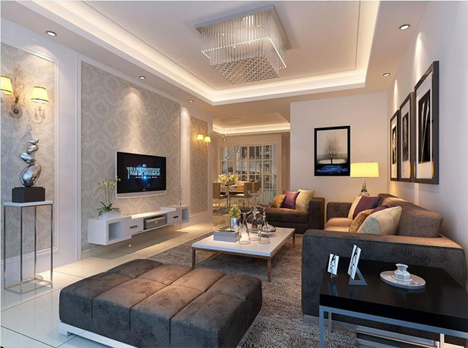 電視背景墻的造型選擇多樣,但是要注意避免背景墻有尖角、突出棱角造型,如三角形。盡量不要對(duì)背景墻進(jìn)行毫無意義的凌亂分割,最好采用圓形、弧形或平直無棱角的線形為主要造型。