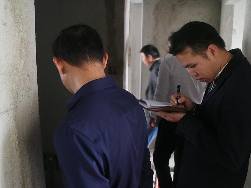 丁總與質(zhì)檢小組一同與項(xiàng)目經(jīng)理進(jìn)行溝通,聽(tīng)取項(xiàng)目經(jīng)理的心聲和意見(jiàn),并強(qiáng)調(diào)了規(guī)范施工、文明施工、抓品質(zhì)、做服務(wù)的重要性,必須要嚴(yán)格按照公司規(guī)定及標(biāo)準(zhǔn)進(jìn)行施工。