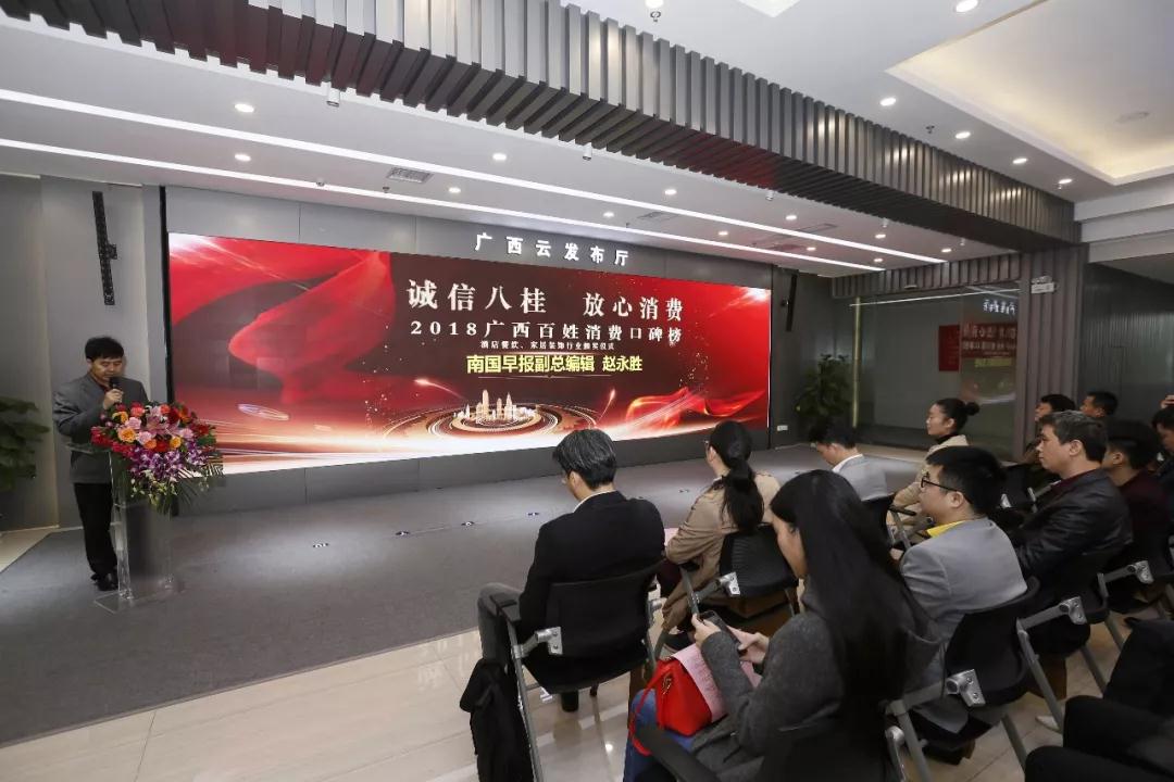 2018年11月20日,注定是不平凡的一天,“誠信八桂 放心消費——2018廣西百姓消費口碑榜頒獎儀式”在廣西日報社云發(fā)布廳舉行,這是一份歷時2個多月,超20萬人參與網絡投票,一份最具市場、百姓認可的行業(yè)消費榜單!