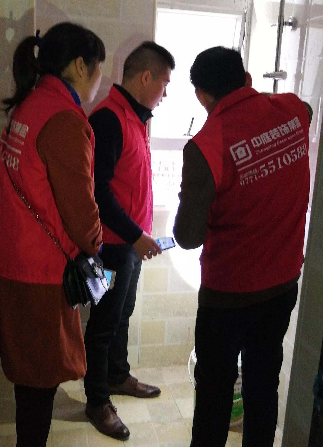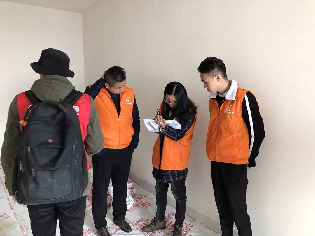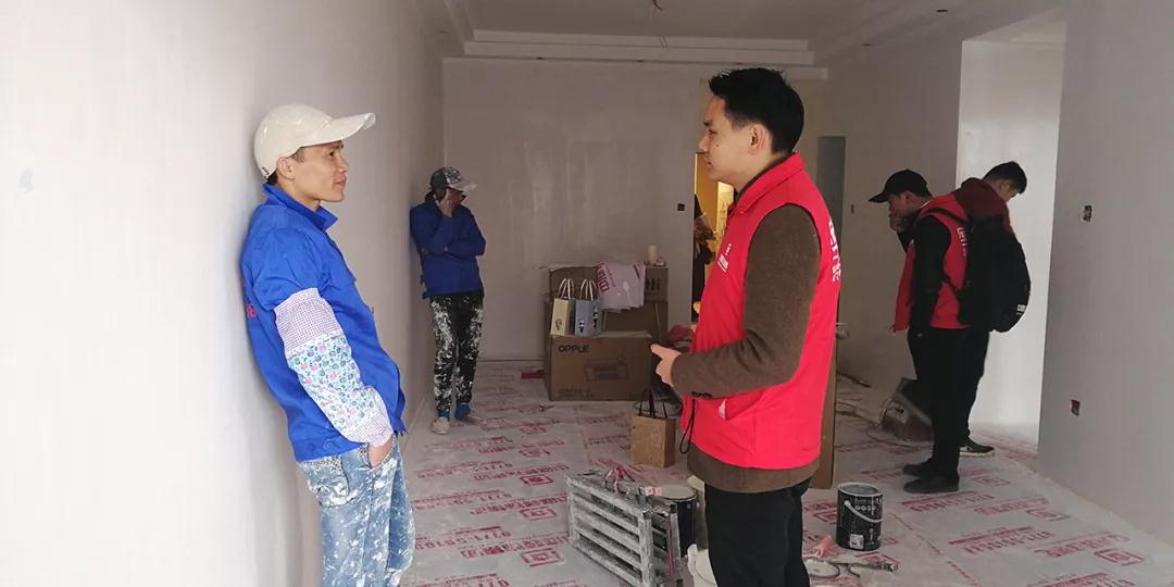 巡檢遇上業(yè)主正在施工現(xiàn)場(chǎng),巡檢人員和業(yè)主交流;業(yè)主表示對(duì)公司的服務(wù)比較滿意,項(xiàng)目經(jīng)理和現(xiàn)場(chǎng)的工人都很好,有朋友需要裝修肯定會(huì)第一個(gè)推薦集團(tuán)。