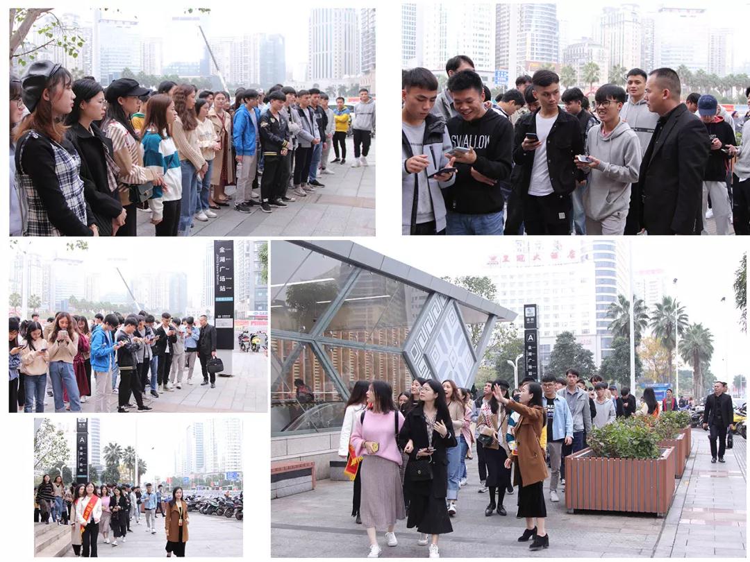早上9點(diǎn),南職師生有組織的乘坐地鐵到達(dá)中庭裝飾集團(tuán)周邊地鐵站——金湖廣場站A出口。
