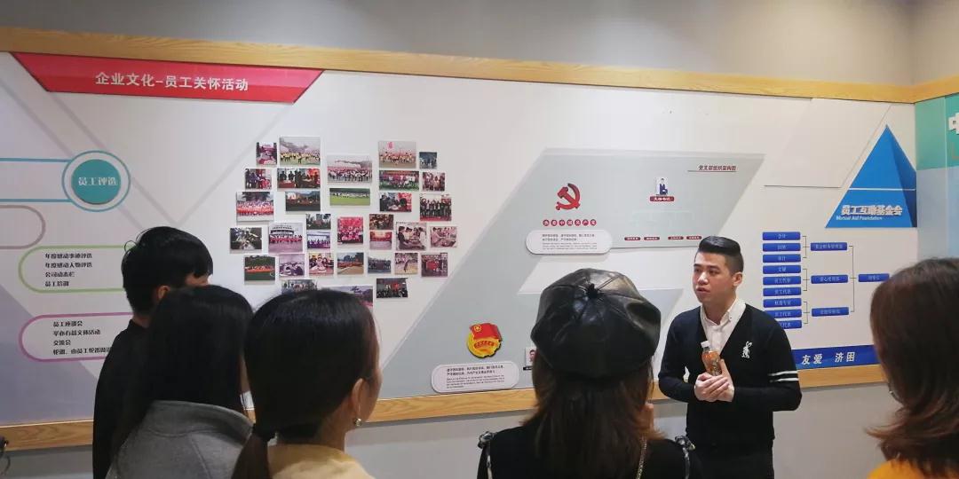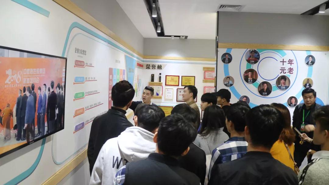 張總帶領(lǐng)學(xué)生參觀中庭裝飾集團(tuán)文化長廊,給同學(xué)們介紹了關(guān)于中庭裝飾集團(tuán)組織架構(gòu),企業(yè)愿景、使命、價值觀以及人文關(guān)懷,愛心公益等方面的企業(yè)文化。