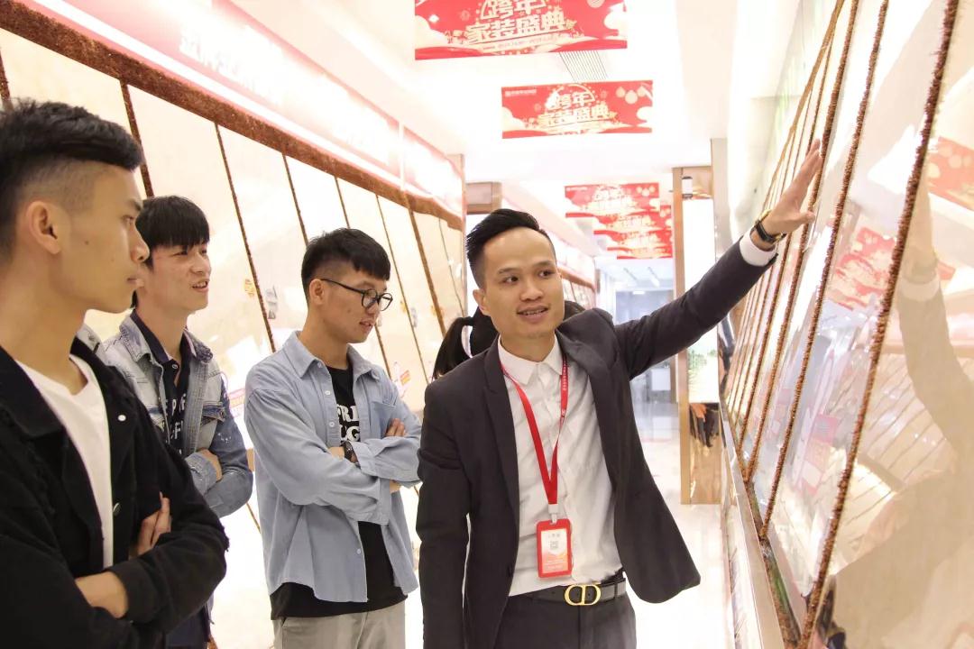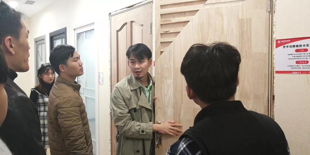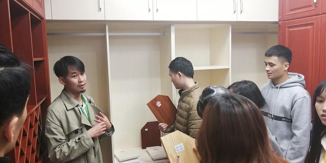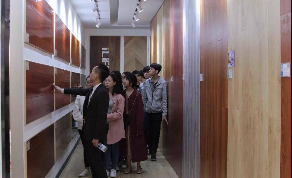 材料展示區(qū)由運(yùn)營部總經(jīng)理楊總和設(shè)計部經(jīng)理韋昌豪帶領(lǐng)學(xué)生參觀。