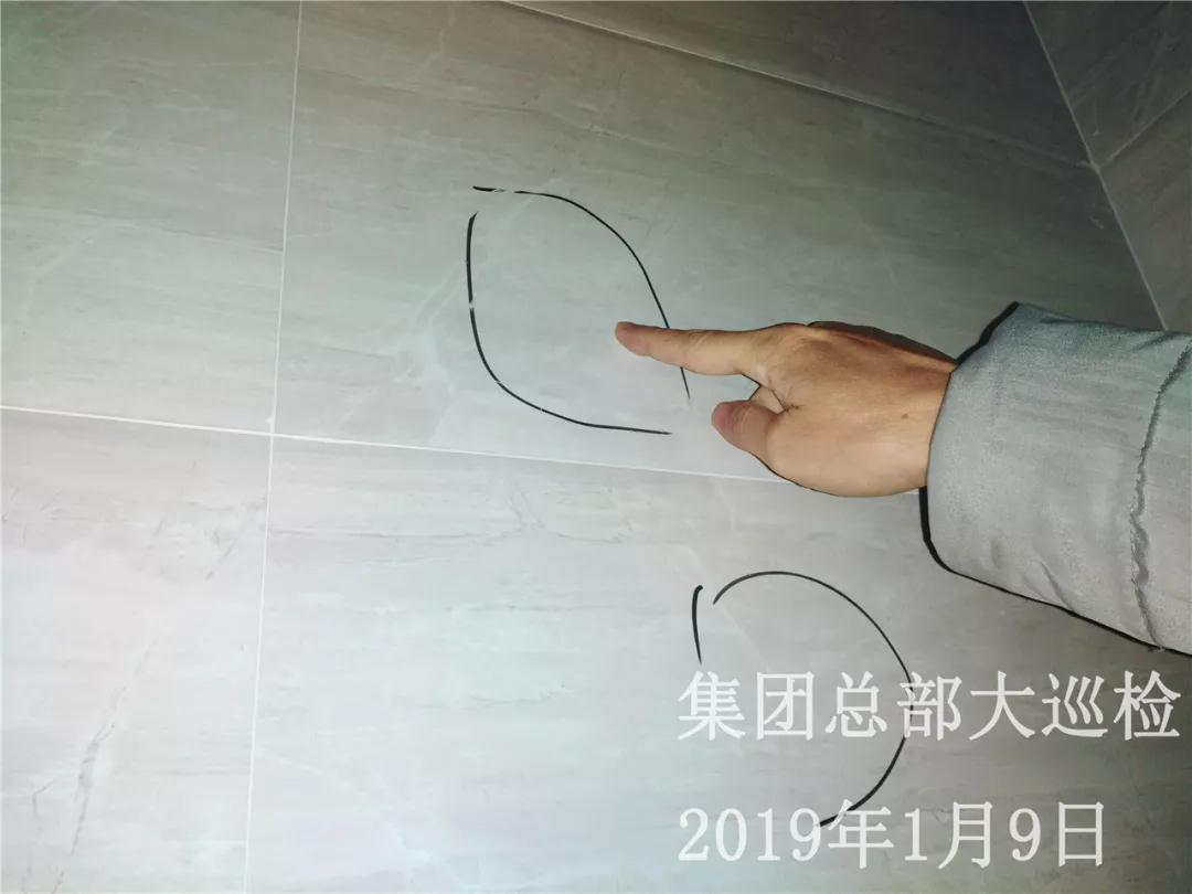 瓷磚空鼓,巡檢組現(xiàn)場作出標記,并責令項目經(jīng)理進行整改,現(xiàn)場安排跟進人員,讓整改落實到位。