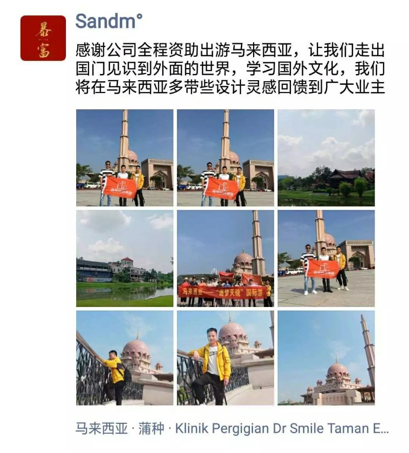 馬來(lái)西亞國(guó)際游讓集團(tuán)優(yōu)秀的家人走出國(guó)境,開(kāi)拓眼界增長(zhǎng)見(jiàn)聞,體驗(yàn)不同的文化,感受不一樣的風(fēng)土人情,也帶回來(lái)了新的設(shè)計(jì)靈感,使自我得到提升。