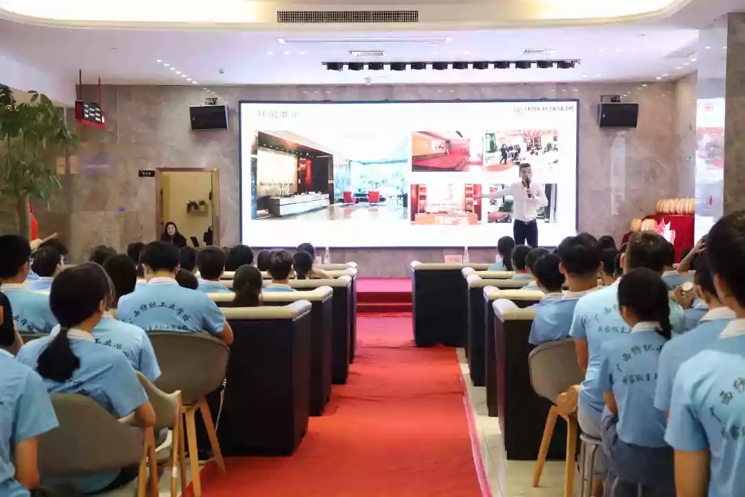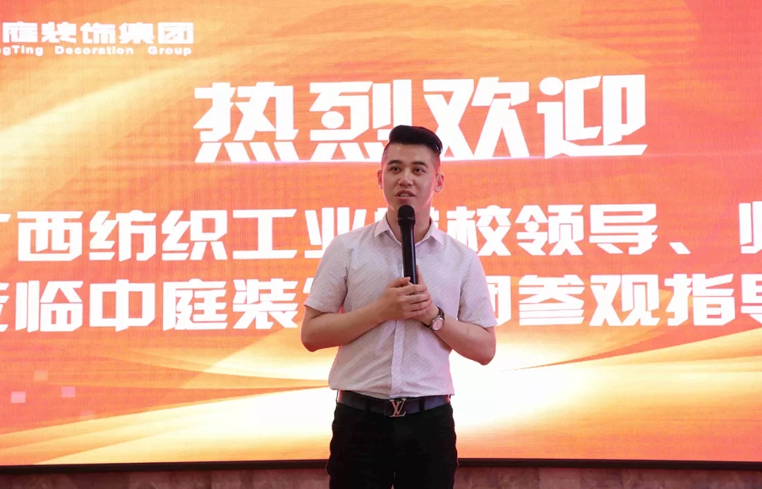 企業(yè)宣講交流會上,袁總向廣西紡織工業(yè)學(xué)校師生系統(tǒng)介紹了中庭裝飾集團(tuán)的發(fā)展歷程、高端設(shè)計服務(wù)理念、未來的發(fā)展規(guī)劃以及各部門崗位職能、就業(yè)能力要求等,讓學(xué)生更加深入了解集團(tuán),同時也讓有志來集團(tuán)發(fā)展的學(xué)生明確了未來的學(xué)習(xí)及自我能力提升方向。