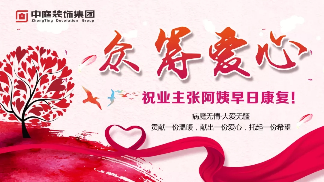 集團(tuán)總裁丁胡先生向全體員工號召,為張阿姨獻(xiàn)出一份愛心。捐款不分多少,貴在有份愛心,只要我們?nèi)巳硕寄芨冻鲆稽c愛、將小愛匯聚成大愛,大愛必定驅(qū)趕病魔,大愛定能早日治愈張阿姨的疾病。