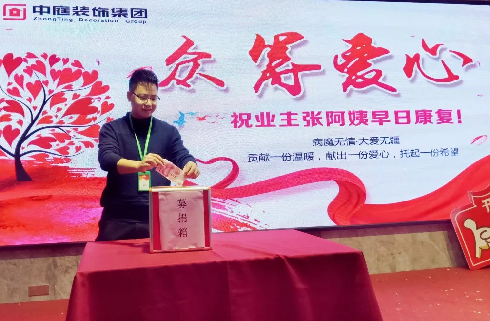 中庭裝飾集團(tuán)黨支部書記張立安向全體員工發(fā)起愛心捐款倡議