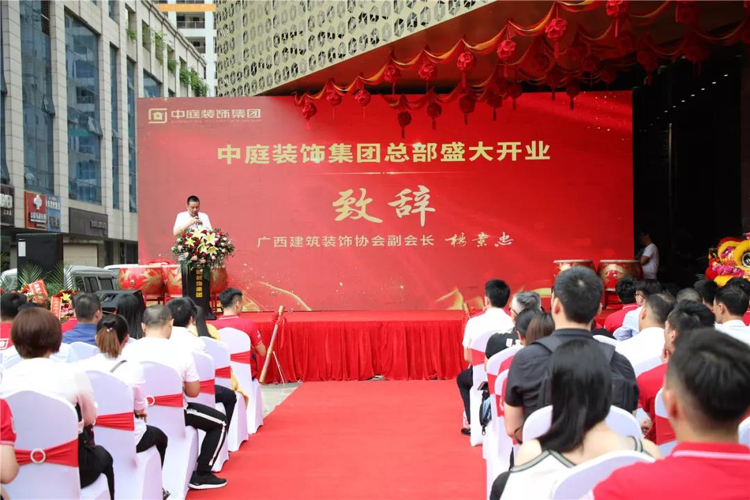 楊會長代表廣西建筑裝飾協(xié)會為集團的盛大開業(yè)慶典活動送上真摯的祝福,同時對集團多年來不忘初心,在廣西裝飾行業(yè)深耕細(xì)作,以優(yōu)質(zhì)的服務(wù)和質(zhì)量為廣大家庭打造了環(huán)保、綠色、健康的居住環(huán)境,營造了良好的行業(yè)環(huán)境給予高度的贊揚和認(rèn)可,也預(yù)祝中庭裝飾集團此次開業(yè)活動圓滿成功,取得佳績,更上一層樓!