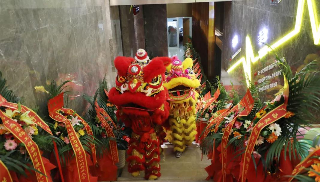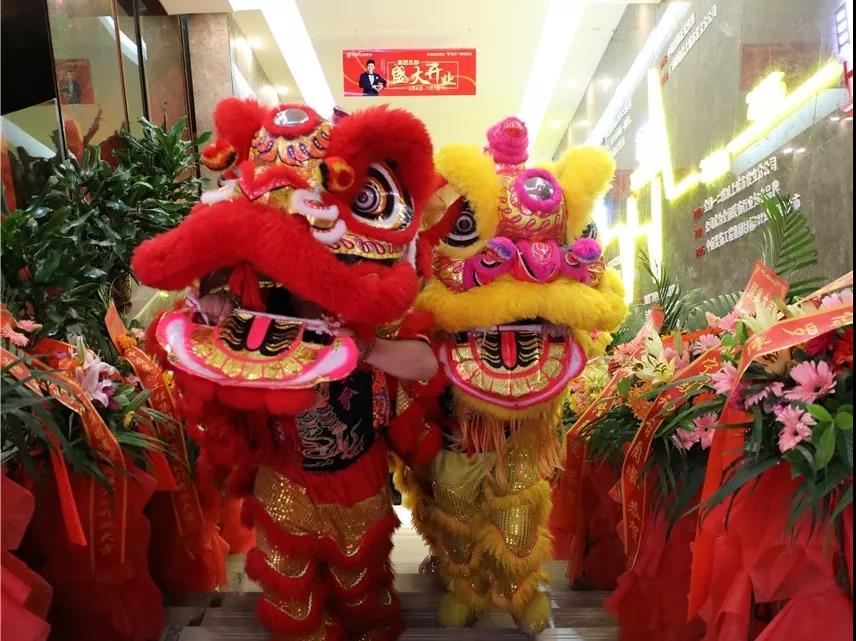 在鏗鏘有力、熱鬧非凡的鑼鼓聲中,火舞祥獅將寓意著“生財”的生菜送到集團總裁丁胡手中,為中庭裝飾集團獻(xiàn)上祥瑞的祝福。