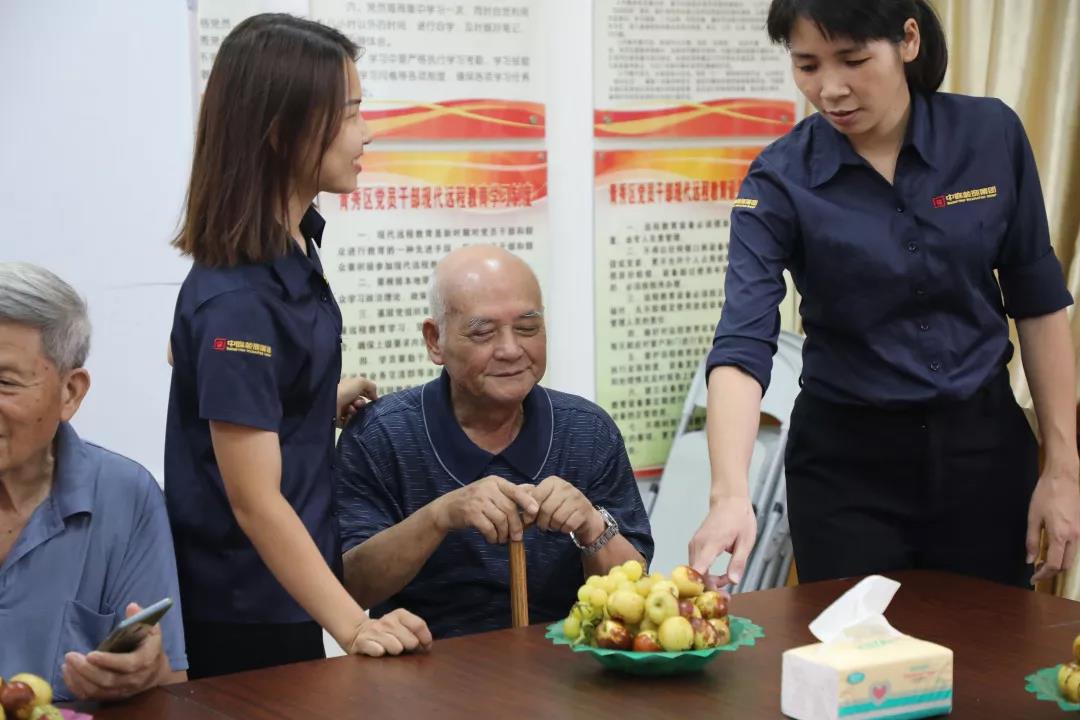 ▲老人們陸續(xù)到達(dá)社區(qū)會(huì)議室中,中庭的家人們與老人們與他們親切交流,了解老人們的日常生活和健康情況,叮囑他們要保重身體,并把葡萄和青棗一一送到他們手中,一時(shí)間,老人們個(gè)個(gè)臉上洋溢著喜悅的笑容,會(huì)議室內(nèi)暖意融融,處處洋溢著歡笑。