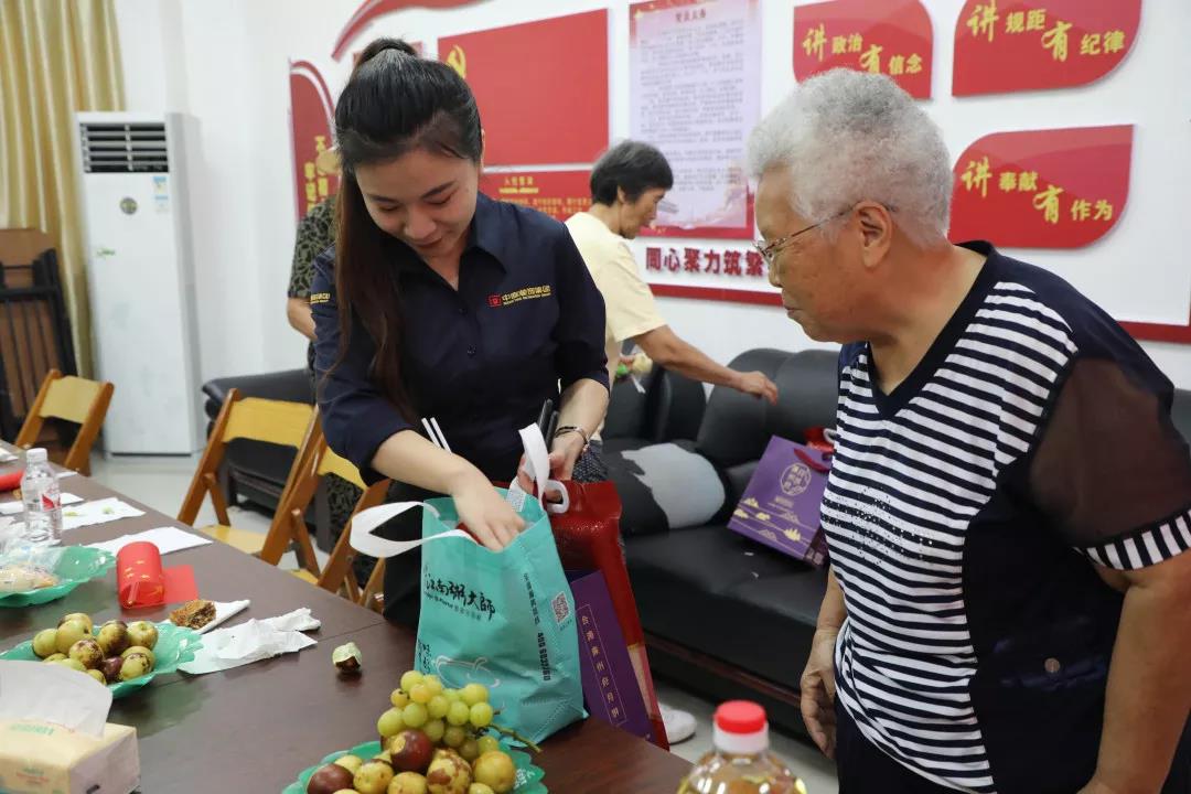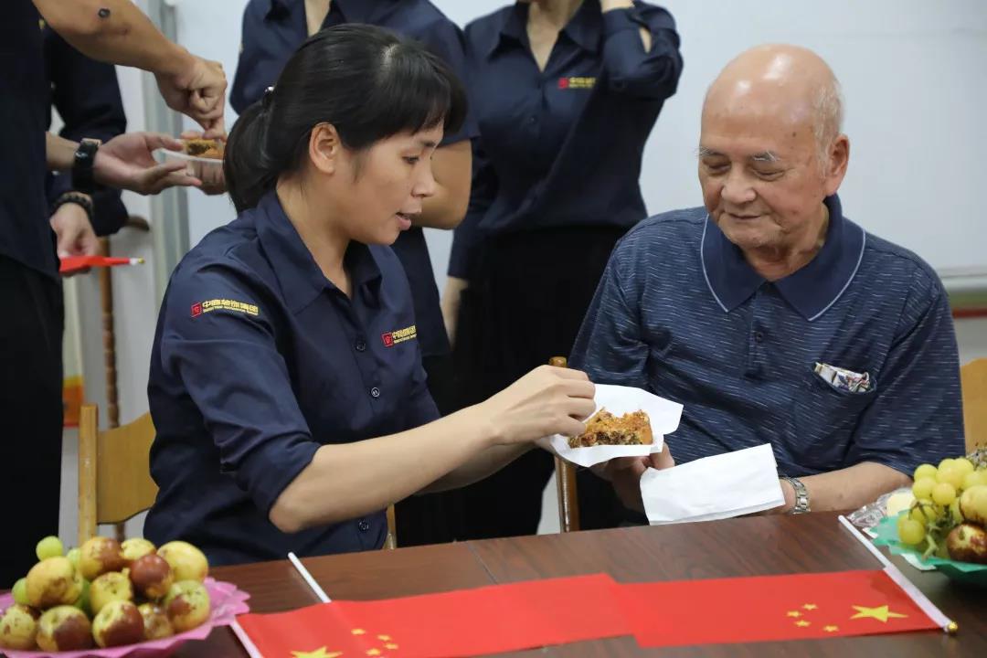 活動(dòng)結(jié)束之際,我們中庭家人們給老人家送上中秋禮物,并幫老人家裝好方便攜帶回去。