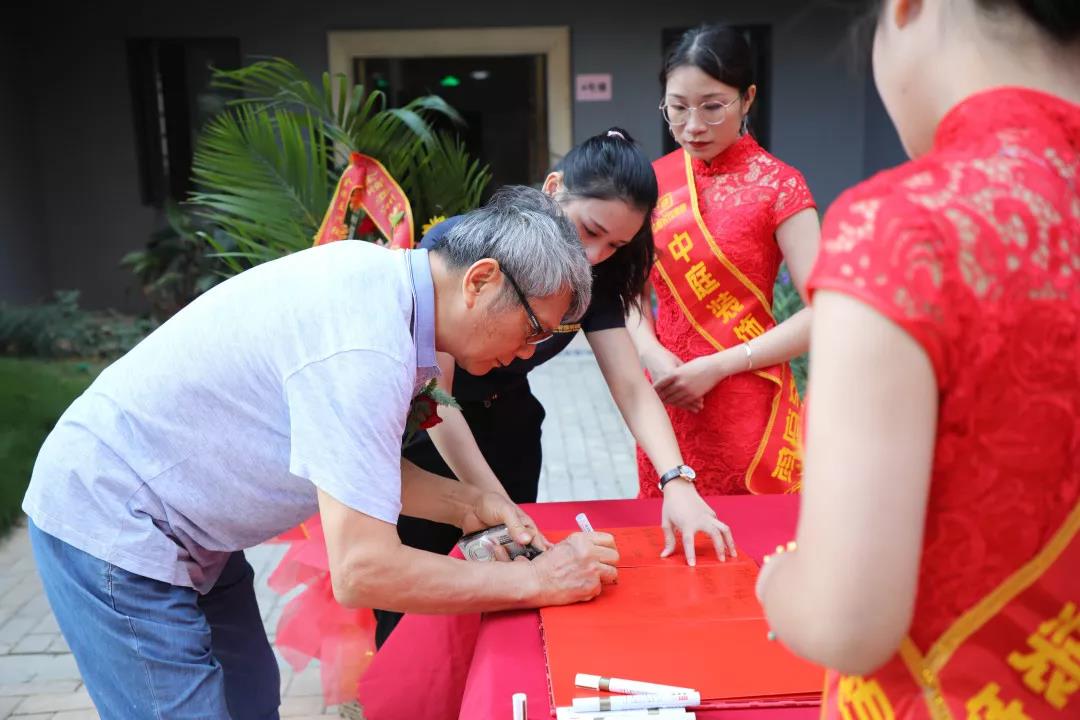 ▲同時,臺下的中庭家人們?yōu)闃I(yè)主獻上手捧花,并送上誠摯的祝福。