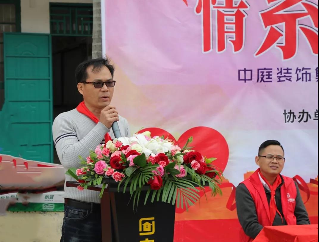 羅波鎮(zhèn)副鎮(zhèn)長吳潔代表鎮(zhèn)黨委、鎮(zhèn)政府向中庭裝飾集團(tuán)組織的愛心助力團(tuán)表示了由衷的感謝。同時(shí)表示,希望通過這次的活動(dòng)能帶動(dòng)更多像中庭裝飾集團(tuán)這樣勇于承擔(dān)社會(huì)責(zé)任、有擔(dān)當(dāng)?shù)膼坌钠髽I(yè)、愛心人士投身到愛心公益中。