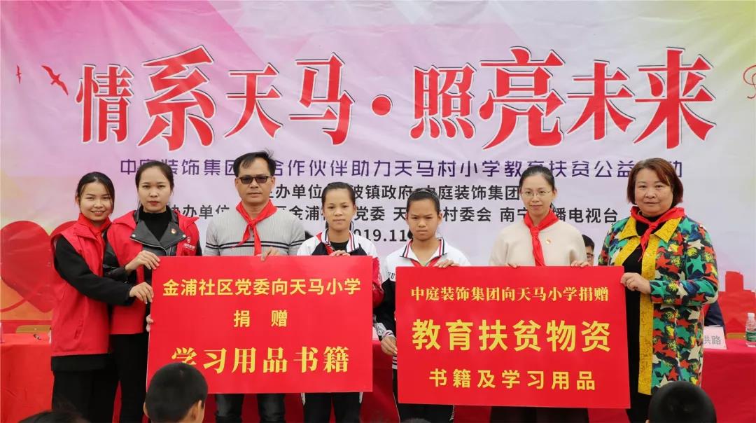 秉承著“源于社會(huì),回饋社會(huì)”的社會(huì)責(zé)任理念,在中庭裝飾集團(tuán)九周年慶之際,集團(tuán)攜手戰(zhàn)略合作伙伴組成愛心助力團(tuán)前往武鳴區(qū)天馬村天馬小學(xué)開展教育扶貧公益活動(dòng)。