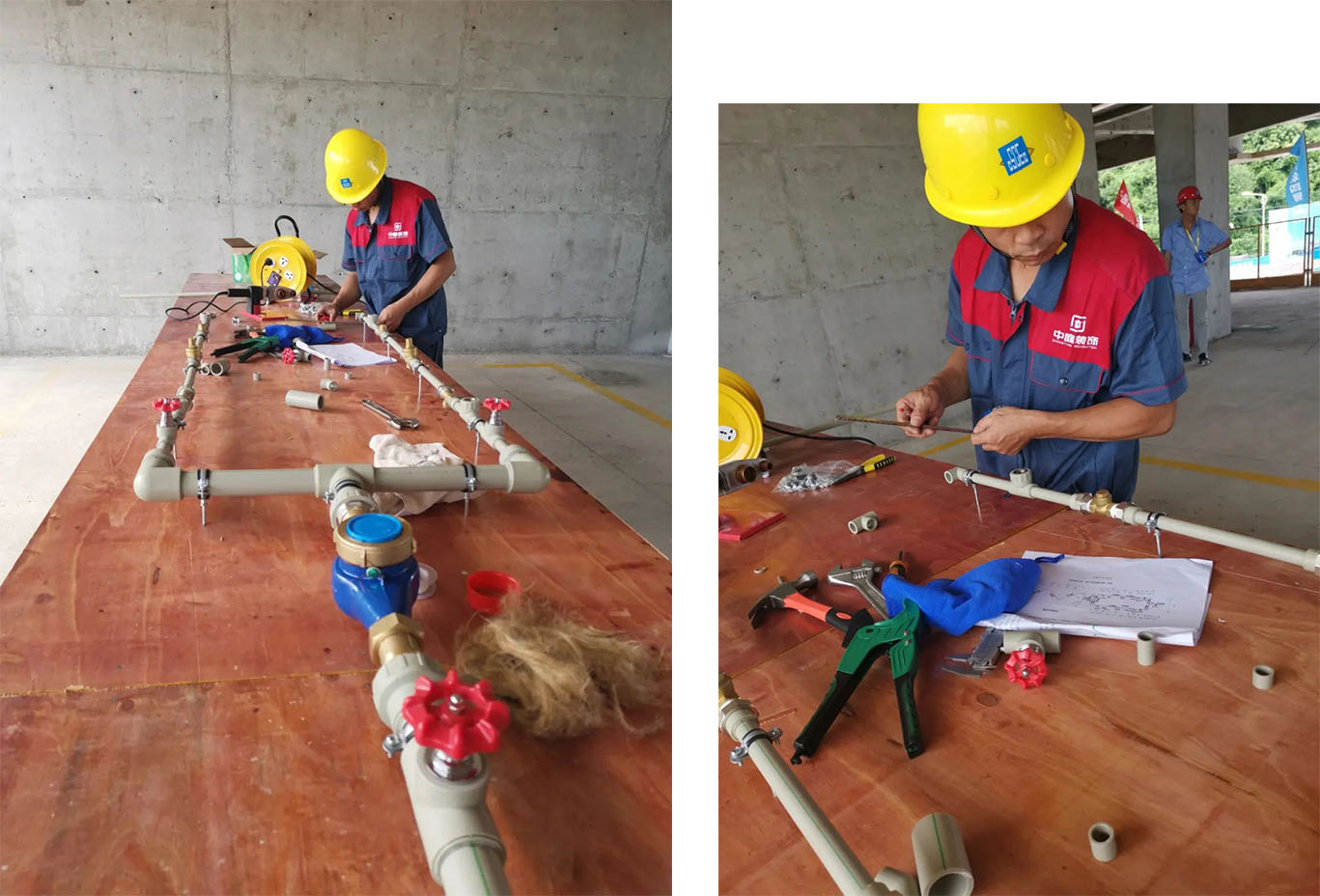 本次比賽從工程部的三個片區(qū)中精心選出優(yōu)秀水電工,瓦工,膩子工各三組,雜工5組,一共32支隊伍參加本次比賽。