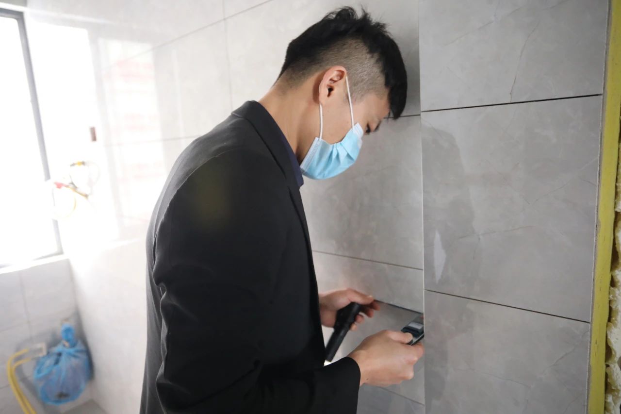 ▲檢查瓷磚鋪設(shè)工藝是否合格