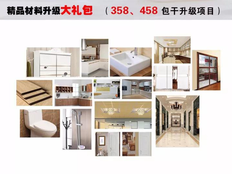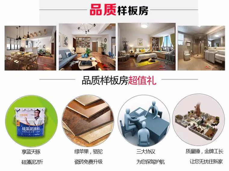 全房精品主材,墻漆,吊頂、瓷磚、木地板、衛(wèi)浴、櫥柜、室內(nèi)門,等免費升級,您可以選購到自己心儀的家裝建材,還能享受超級折上折哦!