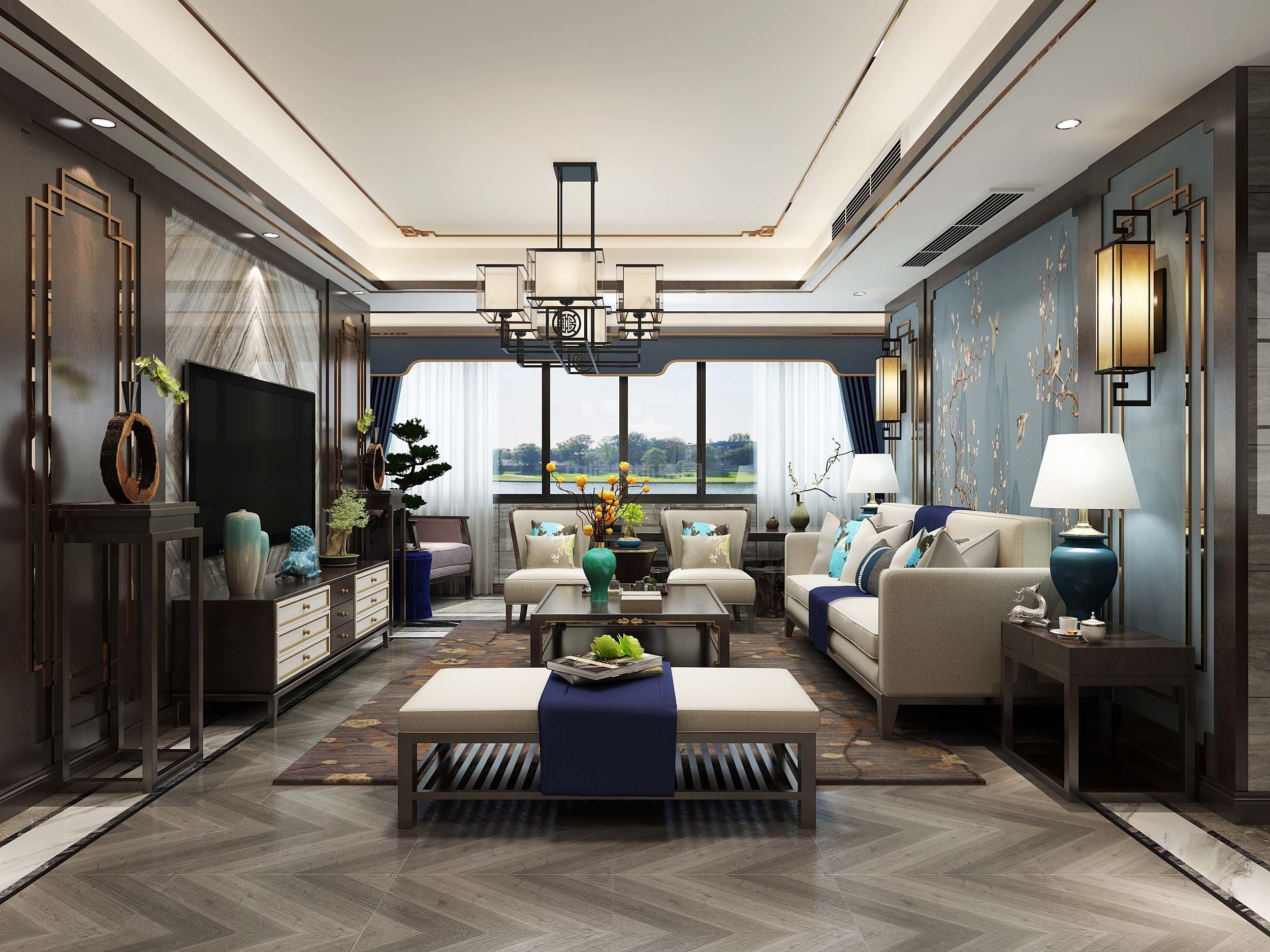施工面積:80-120㎡| 設(shè)計(jì)風(fēng)格:新中式風(fēng)格
