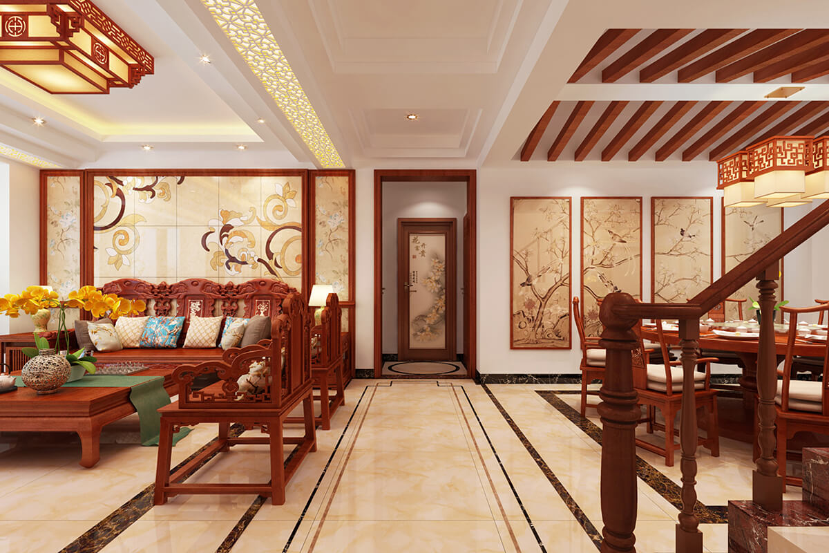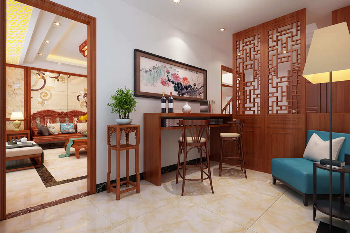 本案設(shè)計采用新中式風(fēng)格,中式風(fēng)格的古色古香與現(xiàn)代風(fēng)格的簡單素雅自然銜接,使生活的實(shí)用性和對傳統(tǒng)文化的追求同時得到了滿足。居室在色彩方面秉承了傳統(tǒng)古典風(fēng)格的典雅和華貴,但與之不同的是加入了很多現(xiàn)代元素,呈現(xiàn)著時尚的特征。