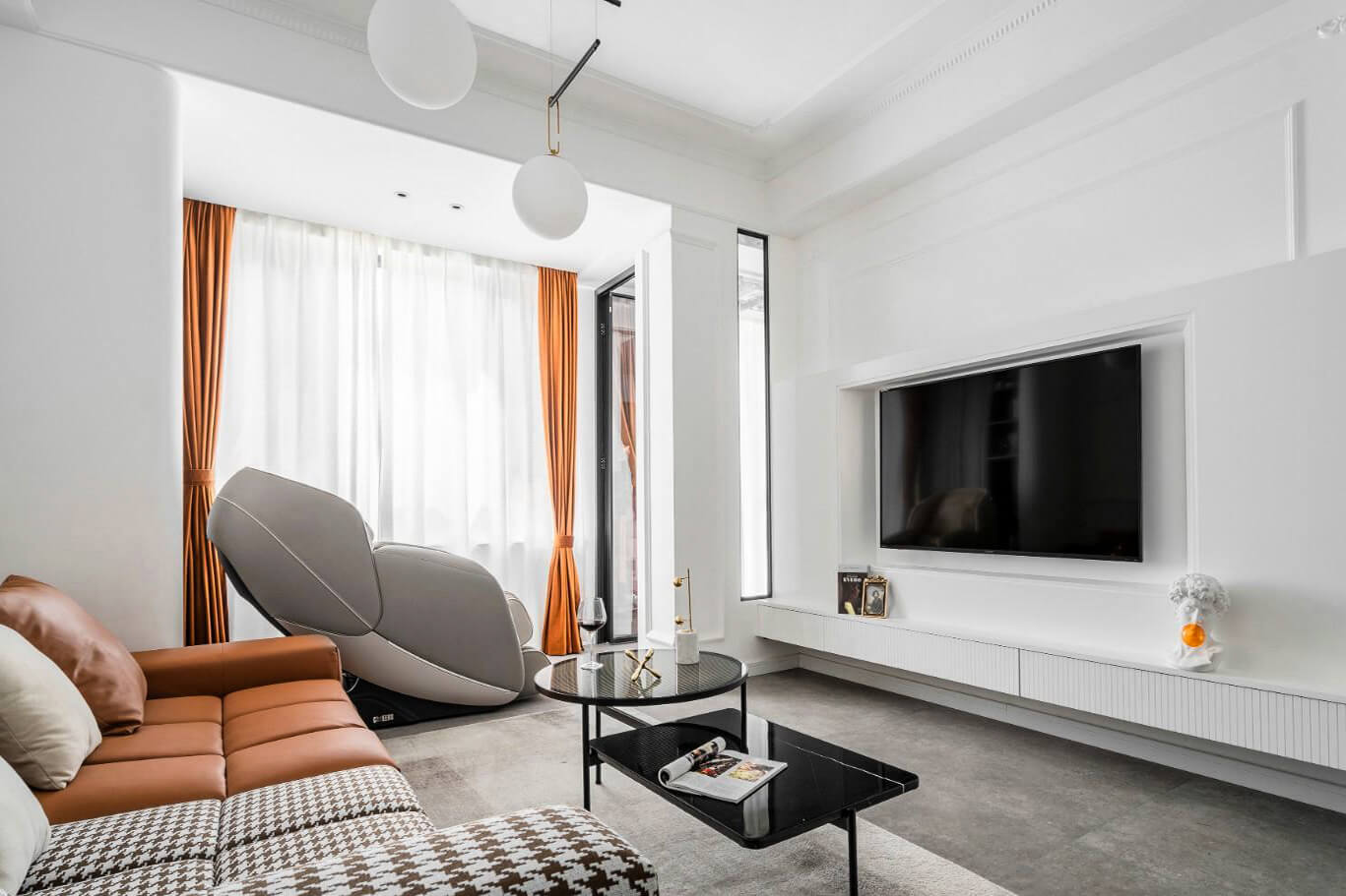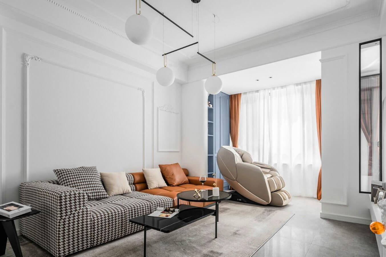 本案建筑總面積142㎡,整體基調(diào)以白色為主,再以橙色、藍(lán)色等亮色系進(jìn)行點(diǎn)綴,色彩柔和雅致,讓空間富有層次感,時(shí)尚與質(zhì)感的結(jié)合,營造舒適又充滿靈感的生活空間。