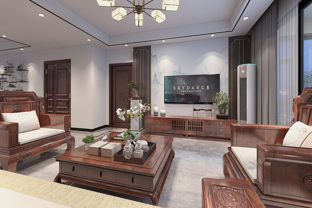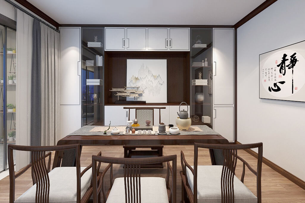 在空間上的裝飾多采用簡潔硬朗的直線條,直線裝飾在空間中的使用,不僅反映出現(xiàn)代人追求簡單生活的居住要求,迎合主人家對中式家具的喜愛,中式的家具追求內(nèi)斂、質(zhì)樸的設(shè)計風(fēng)格,更加實用、更富現(xiàn)代感。新中式風(fēng)格的古典高雅又含有現(xiàn)代風(fēng)格的時尚元素,通過對傳統(tǒng)文化的認(rèn)識,將現(xiàn)代元素和傳統(tǒng)元素結(jié)合在一起,以現(xiàn)代人的審美需求來打造富有傳統(tǒng)韻味的事物,讓傳統(tǒng)藝術(shù)在當(dāng)今社會得到合適的體現(xiàn)。