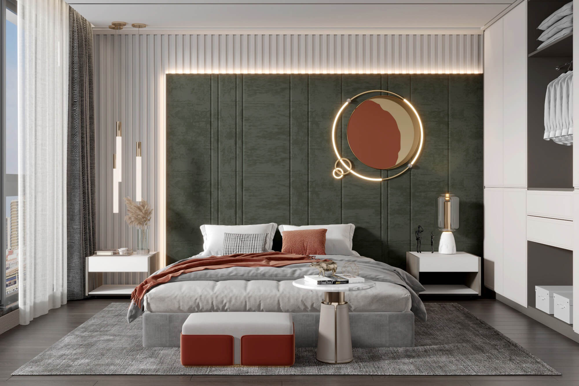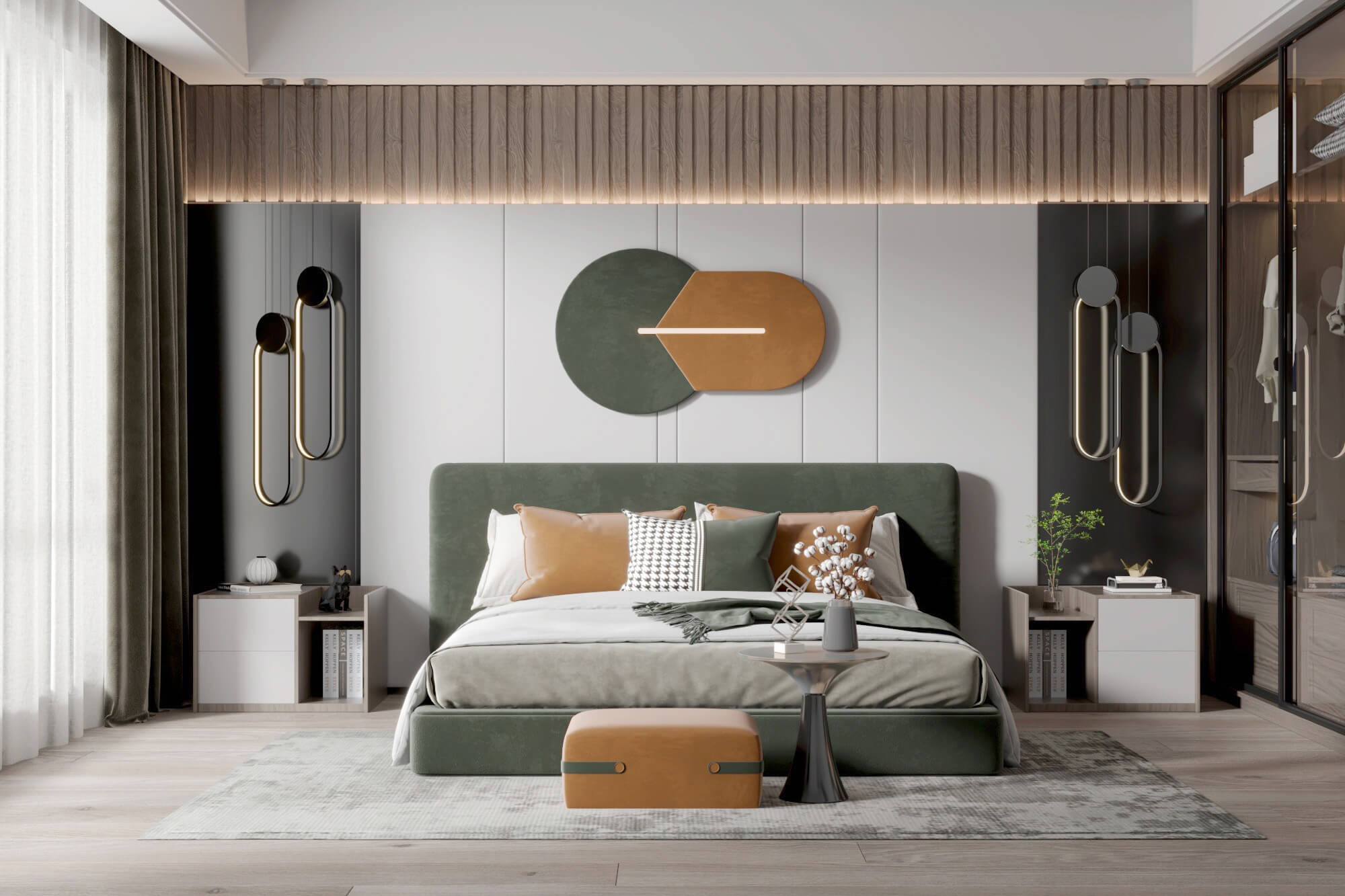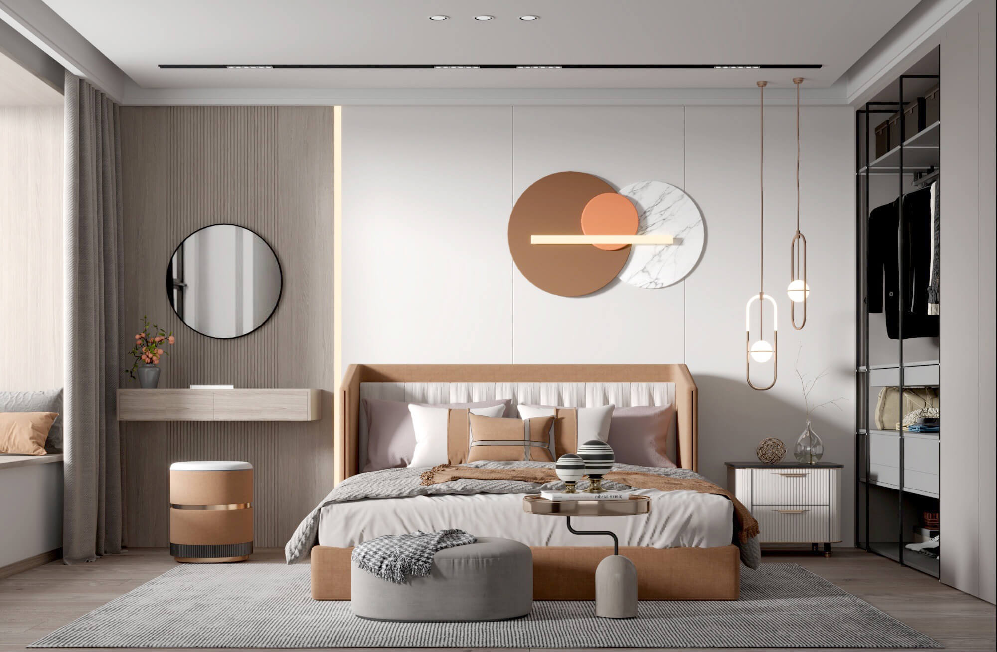本案為典雅的輕奢風格。簡約的空間層次,和諧有序的色彩調配,強調功能性與美學融為一體,拔高對品質的追求,在淡淡的溫馨氣質中,勾勒心中理想家的溫馨情調。