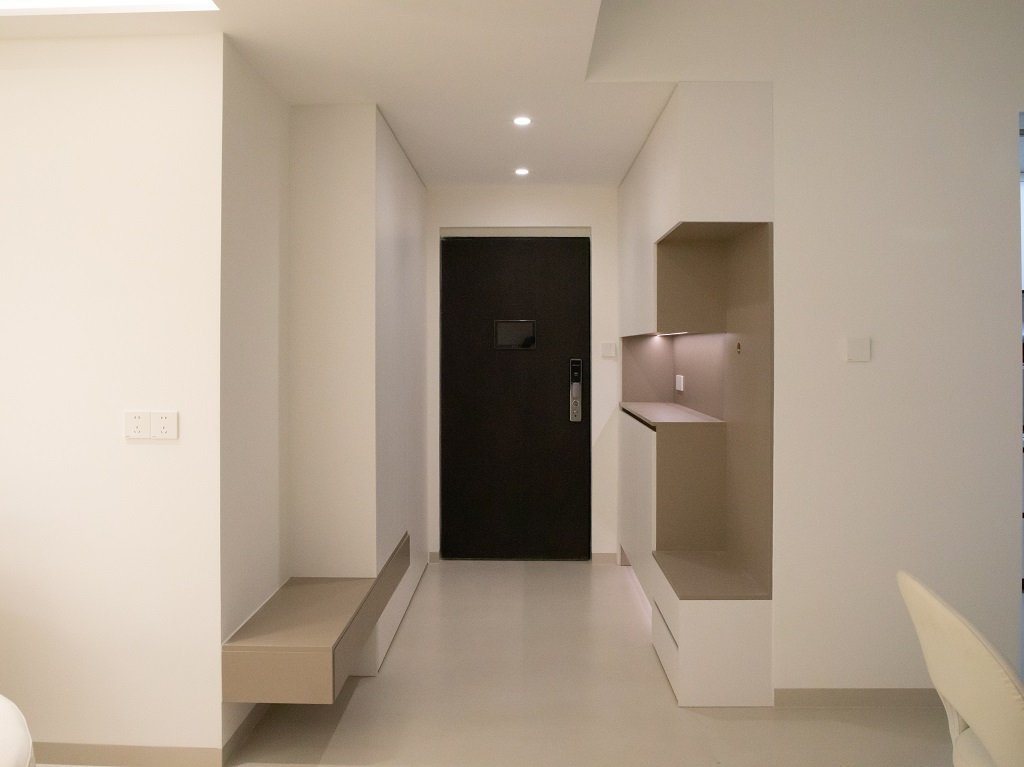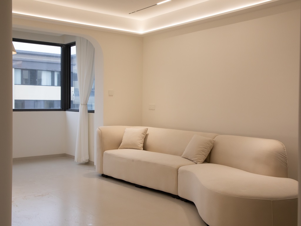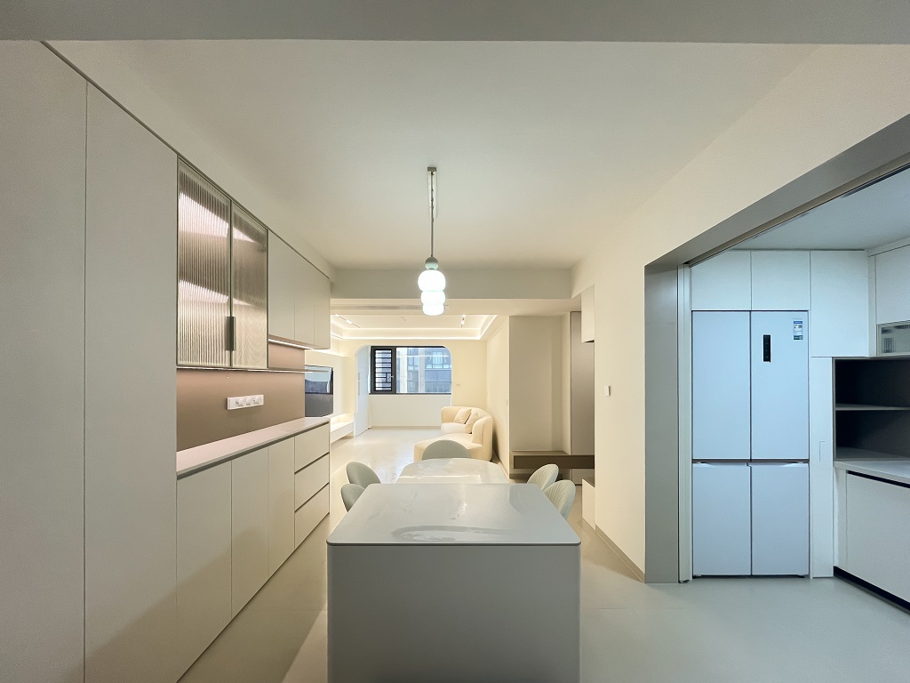 空間整體奶白色調(diào)裝飾,耶為空間帶來(lái)了充沛的光線,設(shè)計(jì)師整體結(jié)構(gòu)上不設(shè)明顯的界定,在裝修次材料、色彩搭配上逐步描述空間的構(gòu)成關(guān)系。