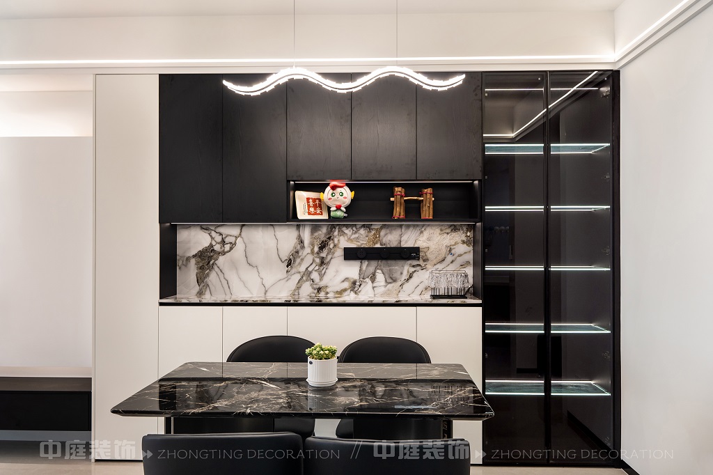 整個家以黑、白、灰為主色調(diào),簡約又高級??蛷d電視墻的設(shè)計很有層次,黑白柜體搭配大理石元素,質(zhì)感拉滿;餐廳的黑色大理石餐桌盡顯格調(diào)。玄關(guān)的黑色木門和“喜樂平安”的細(xì)節(jié),又添了幾分溫馨。廚房的灰色系櫥柜實用又美觀,衛(wèi)生間把洗衣區(qū)和洗漱區(qū)結(jié)合,大理石臺面太顯質(zhì)感了!整體風(fēng)格利落大氣,每一處都透著精致,是現(xiàn)代年輕人都愛的極簡高級感沒錯了~