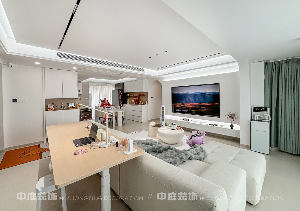 這套房子的裝修風(fēng)格屬于現(xiàn)代奶油風(fēng)格。整體以純凈的白色為主色調(diào),營(yíng)造出簡(jiǎn)潔明亮的空間感。線條設(shè)計(jì)極為流暢,如拱形門洞、無主燈的線性燈帶,弱化了復(fù)雜裝飾,凸顯極簡(jiǎn)美學(xué)。