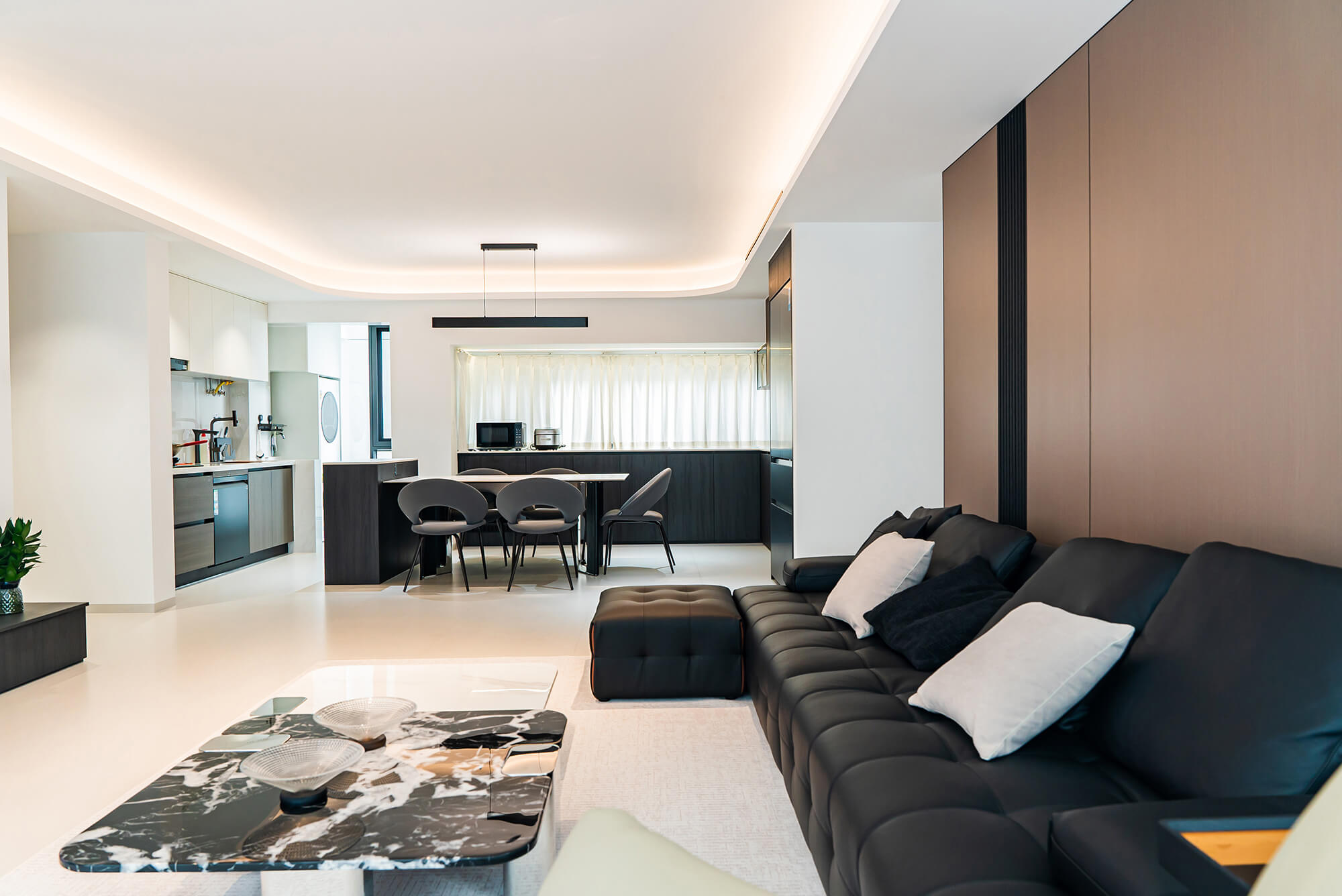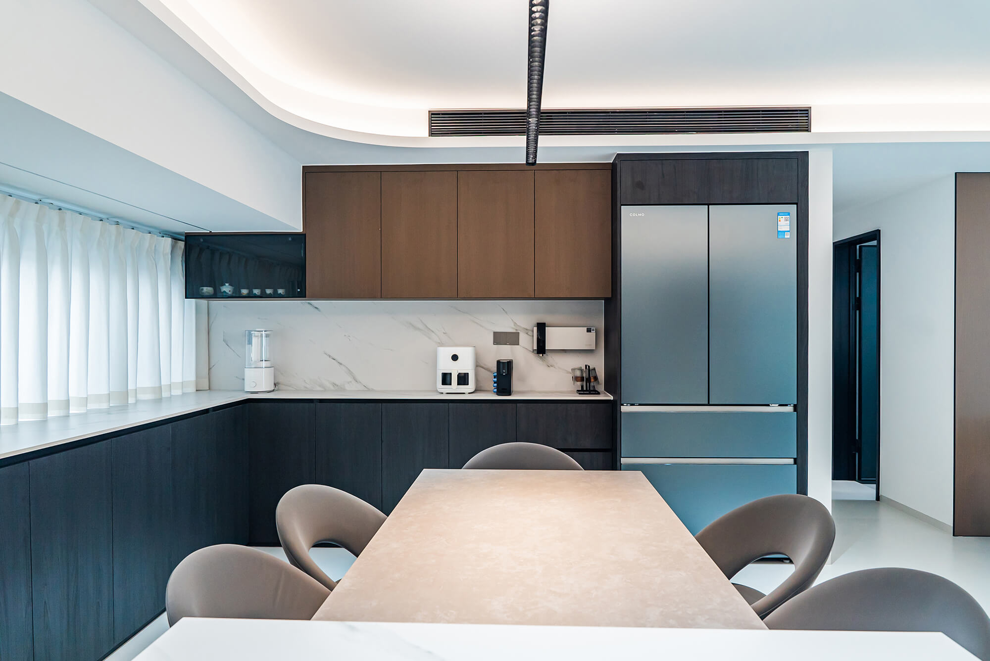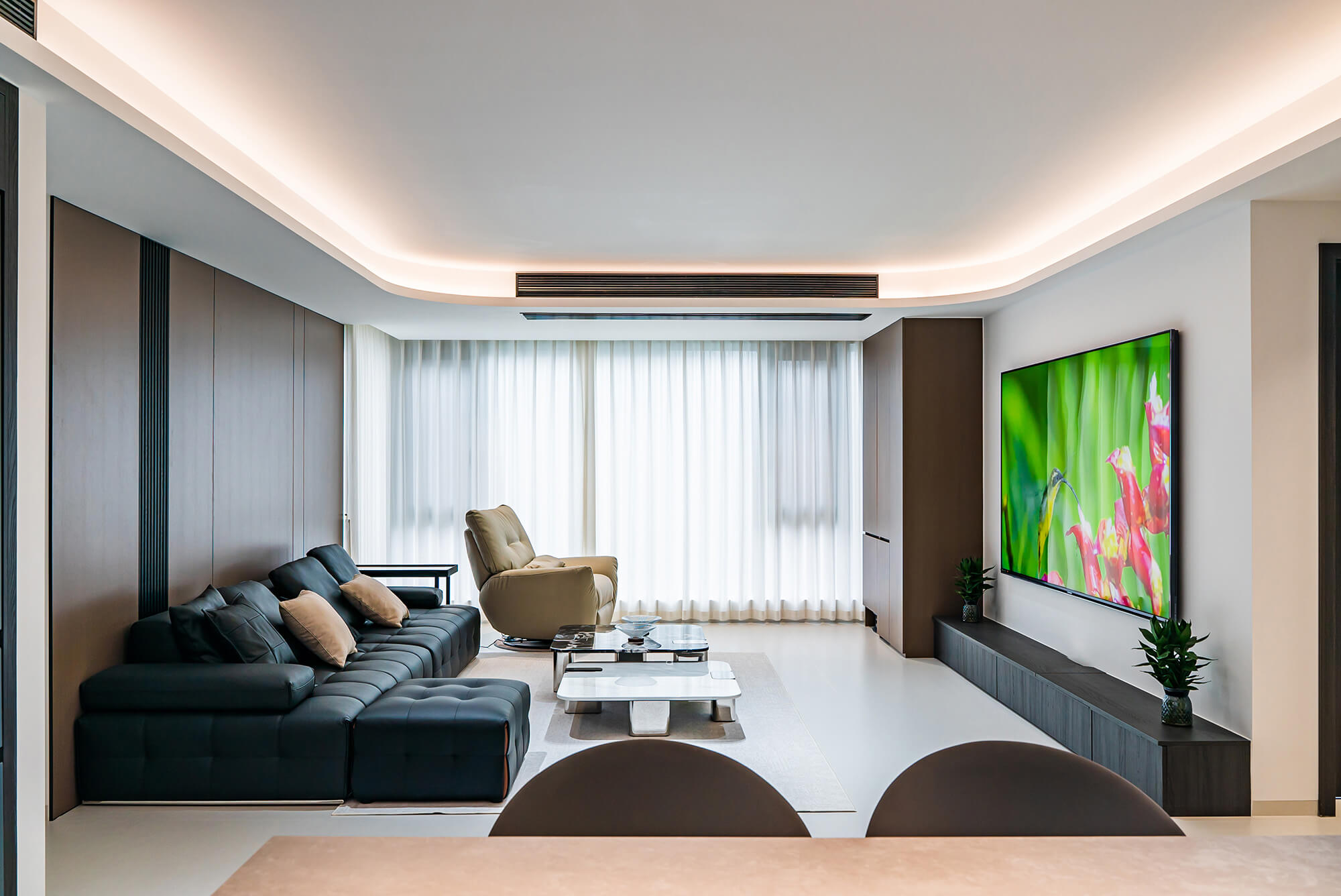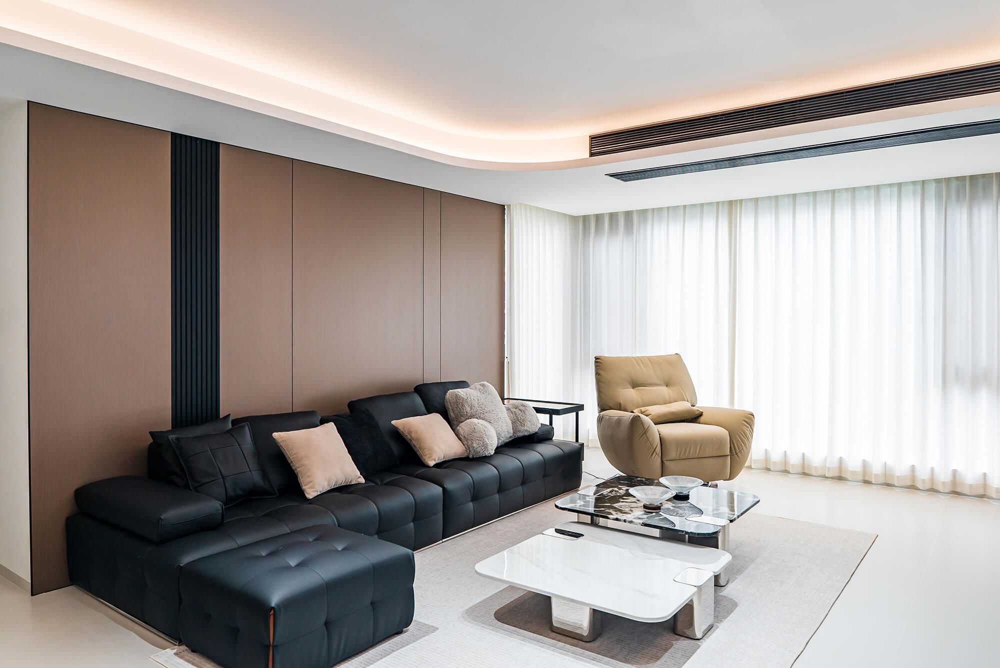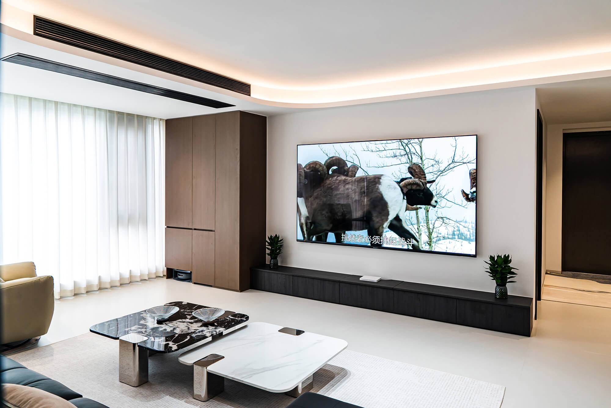 極致純粹的色彩美學(xué),以黑、白、灰三個(gè)基礎(chǔ)色構(gòu)建空間骨架,通過不同明度、材質(zhì)的層次對(duì)比(如啞光水泥、亮面巖板、磨砂金屬)豐富視覺。線條利落干脆,無多余裝飾,注重功能與結(jié)構(gòu)的統(tǒng)一性,打造冷靜、理性、富有高級(jí)質(zhì)感的極簡空間。