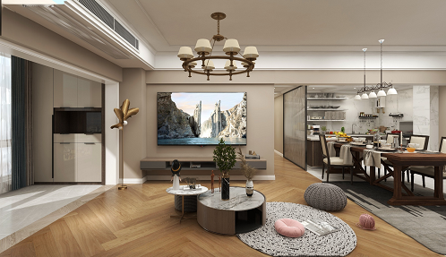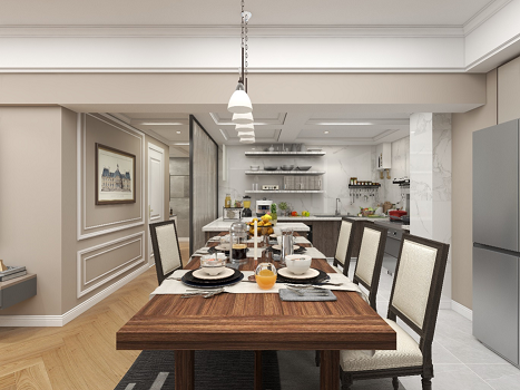 開放式廚房和餐廳可以共享操作,互不干擾,又可以加強家人之間的互動性提高家庭的幸福感。